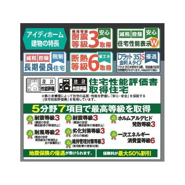 駐車場3台分以上 バス1坪以上 24時間換気システム バリアフリー 閑静な住宅街 整形地 設計住宅性能評価書あり 建設住宅性能評価書あり 長期優良住宅(耐震、省エネ性等高い)